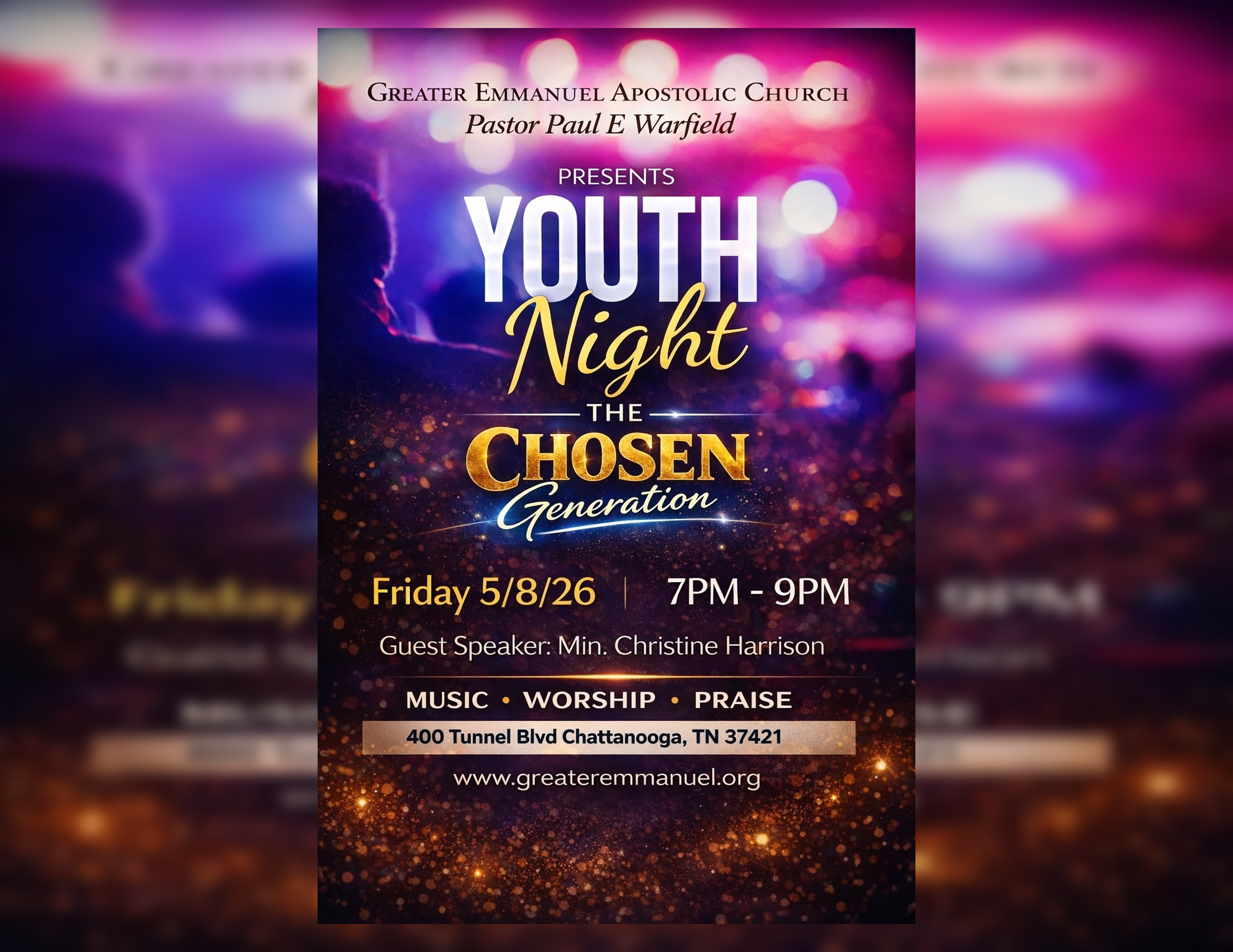 Although Servant Harrison came from a deeply religious family upbringing, it was not until she accepted the responsibility of walking according to God’s will as a chosen vessel in sharing His-Storythat being a Christian took on new meaning. This acceptance to do God’s bidding also came with a challenge that prompted more than just a move but a movement mirroring what started spiritually from the Greater MD/DC/VA area to Georgia in September 2004. During this unchartered timeframe, the Lord placed Servant Harrison in a Spiritual Boot Camp to develop an ear to hear what the Spirit of the Lord is saying to His Church, the Bride. This vigorous form of knowing the Creator in an intimate way lasted for over 13 years until the right level of maturity was reached and the Father revealed He was taking His Daughter spiritually higher with the return to the State of Tennessee after a 20-year hiatus in February 2018.